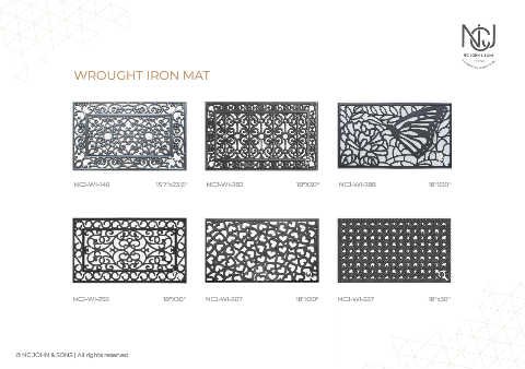 WROUGHT IRON MAT NCJ-WI-146 15.7"x23.6" NCJ-WI-282 18"X30" NCJ-WI-288 18"X30" NCJ-WI-293 18"X30" NCJ-WI-307 18"X30" NCJ-WI-337 18"x30" © NC JOHN & SONS | All rights reserved