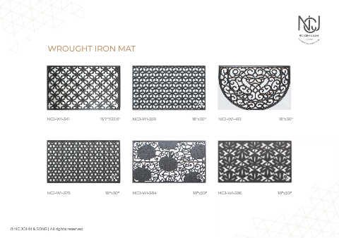 WROUGHT IRON MAT NCJ-WI-341 15.7"X23.6" NCJ-WI-359 18"x30" NCJ-WI-412 18"x30" NCJ-WI-379 18"x30" NCJ-WI-384 18"x30" NCJ-WI-386 18"x30" © NC JOHN & SONS | All rights reserved
