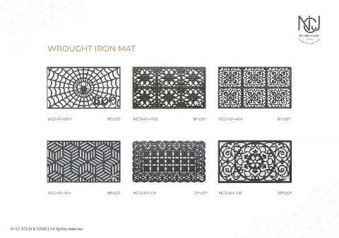 WROUGHT IRON MAT NCJ-WI-394 18"x30" NCJ-WI-405 18"x30" NCJ-WI-424 18"x30" NCJ-WI-414 18"x30" NCJ-WI-415 22"x37" NCJ-WI-418 18"x30" © NC JOHN & SONS | All rights reserved