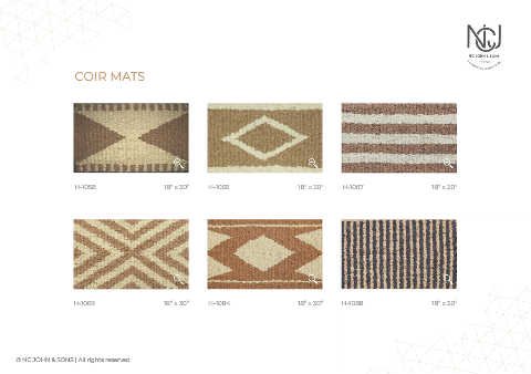 COIR MATS H-1058 18” x 30” H-1059 18” x 30” H-1067 18” x 30” H-1069 18” x 30” H-1084 18” x 30” H-1088 18” x 30” © NC JOHN & SONS | All rights reserved