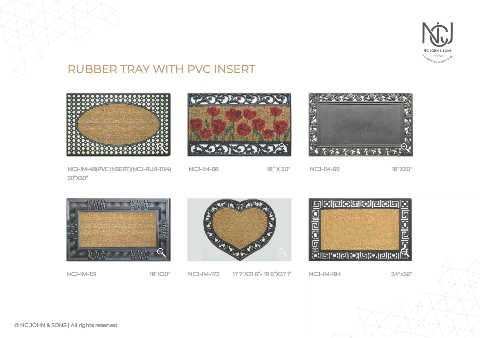 RUBBER TRAY WITH PVC INSERT NCJ-IM-48(PVC INSERT)(NCJ-RUB-1134) NCJ-IM-68 18” X 30” NCJ-IM-69 18”X30” 20”X30” NCJ-IM-151 18”X30” NCJ-IM-172 17.7”X21.6”- 19.6“X27.1” NCJ-IM-184 24”x36” © NC JOHN & SONS | All rights reserved