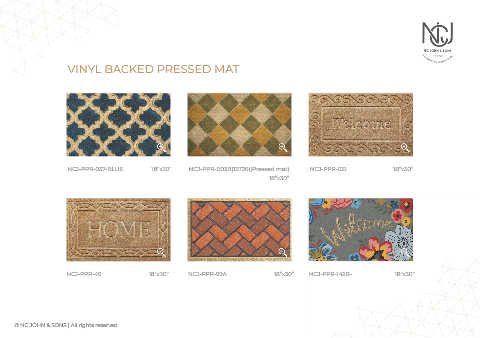 VINYL BACKED PRESSED MAT NCJ-PPR-037-BLUE 18”x30” NCJ-PPR-003B(13726)(Pressed mat) NCJ-PPR-031 18”x30” 18”x30” NCJ-PPR-49 18”x30” NCJ-PPR-99A 18”x30” NCJ-PPR-143B- 18”x30” © NC JOHN & SONS | All rights reserved